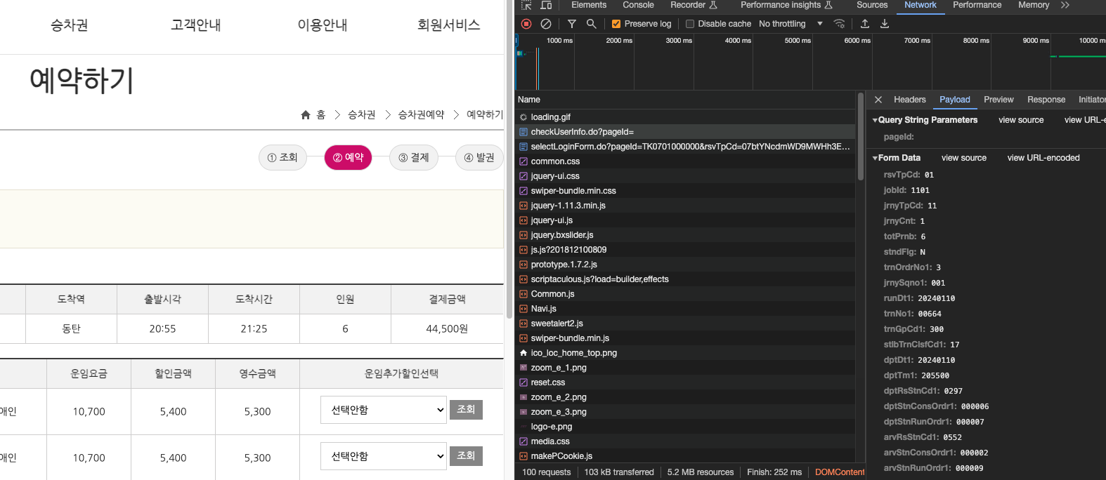 "psgNum": str(adult+child+senior+svrDsb+mldDsb), # 총 승객 인원